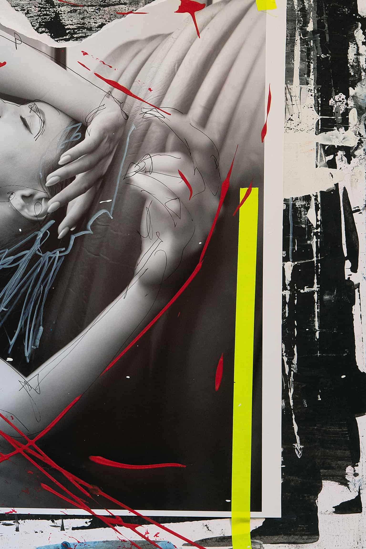 • Tusche, Ölkreide, Deckweiss, Klebeband, Acryl, Originalfotografie, Collage auf Hahnemühle FineArt Baryta Papier