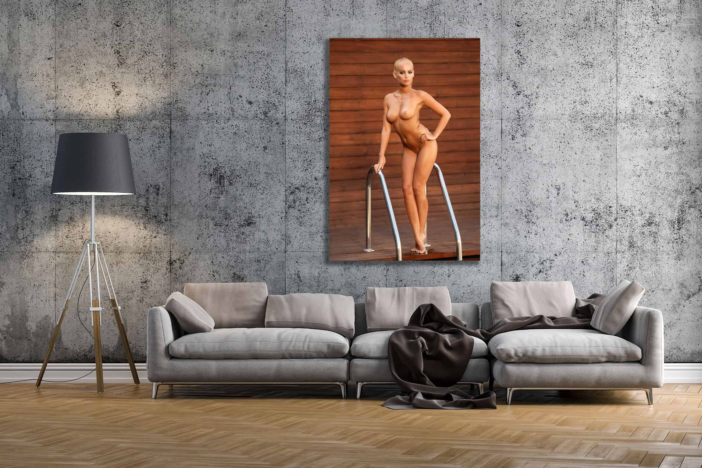 Intensiv und unerschütterlich. Das warme Licht unterstreicht die Konturen und hebt ihre selbstbewusste Haltung hervor – pure Präsenz.