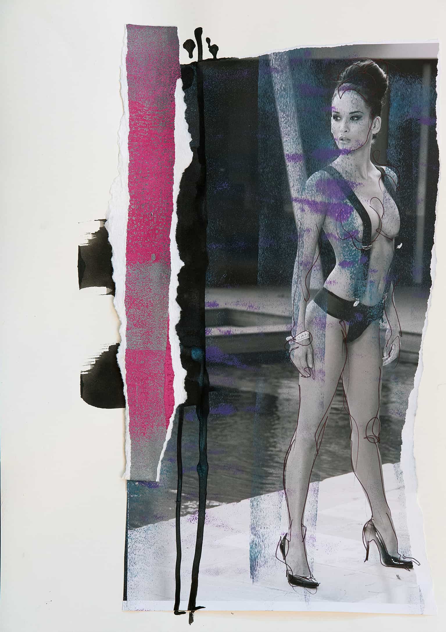 • Tusche, Acryl, original Fotografie, Collage auf Papier