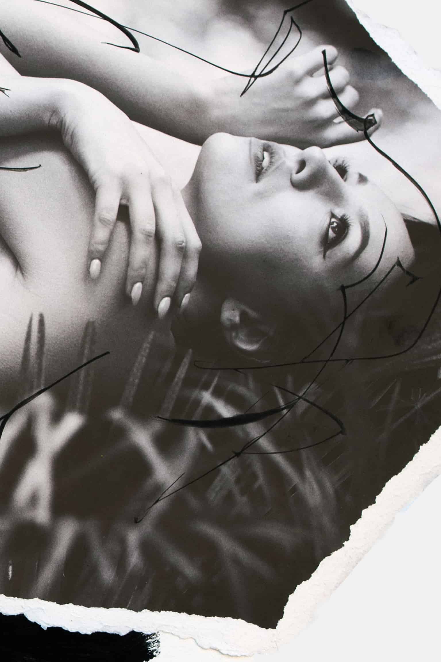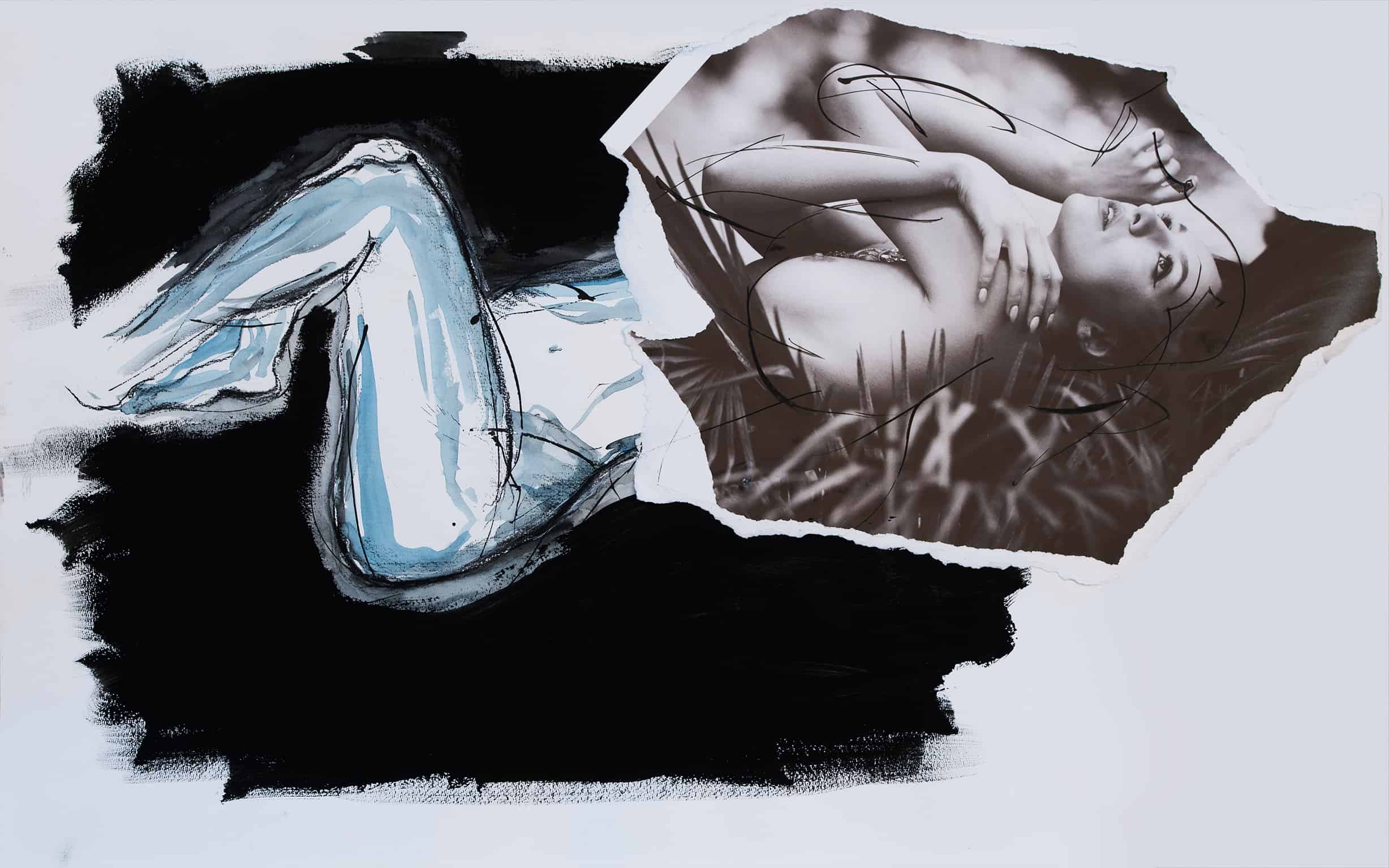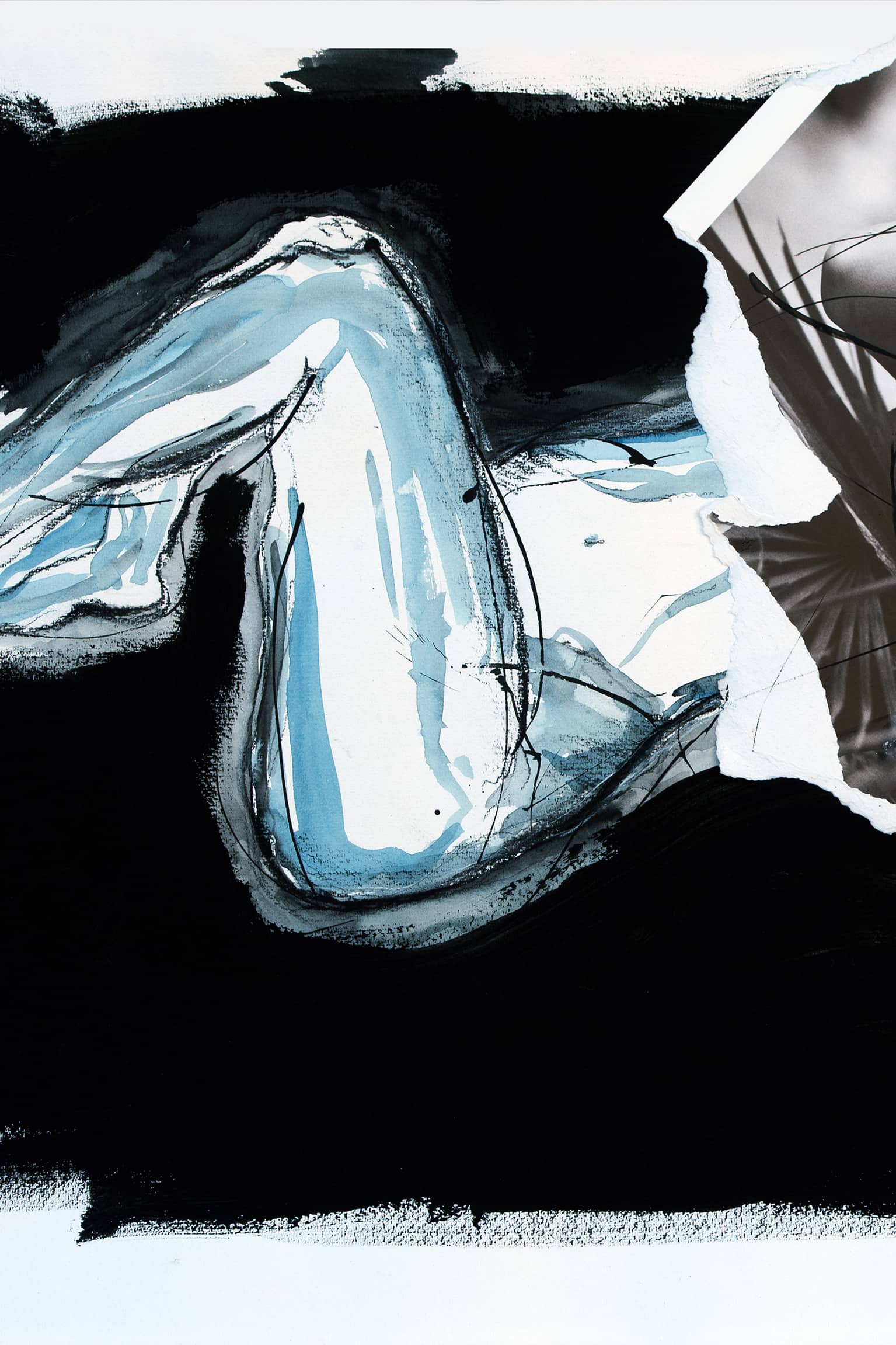 A gaze that cuts through time: Here, a woman in contemplation draws the observer into a world beyond the paper’s edge. Enveloped in black and celestial blue, she embodies tranquility and reflection. Her silhouette, poised between abstraction and reality, renders this piece an irresistible focal point for any collection, inspiring onlookers to peer beyond the confines of the mundane.