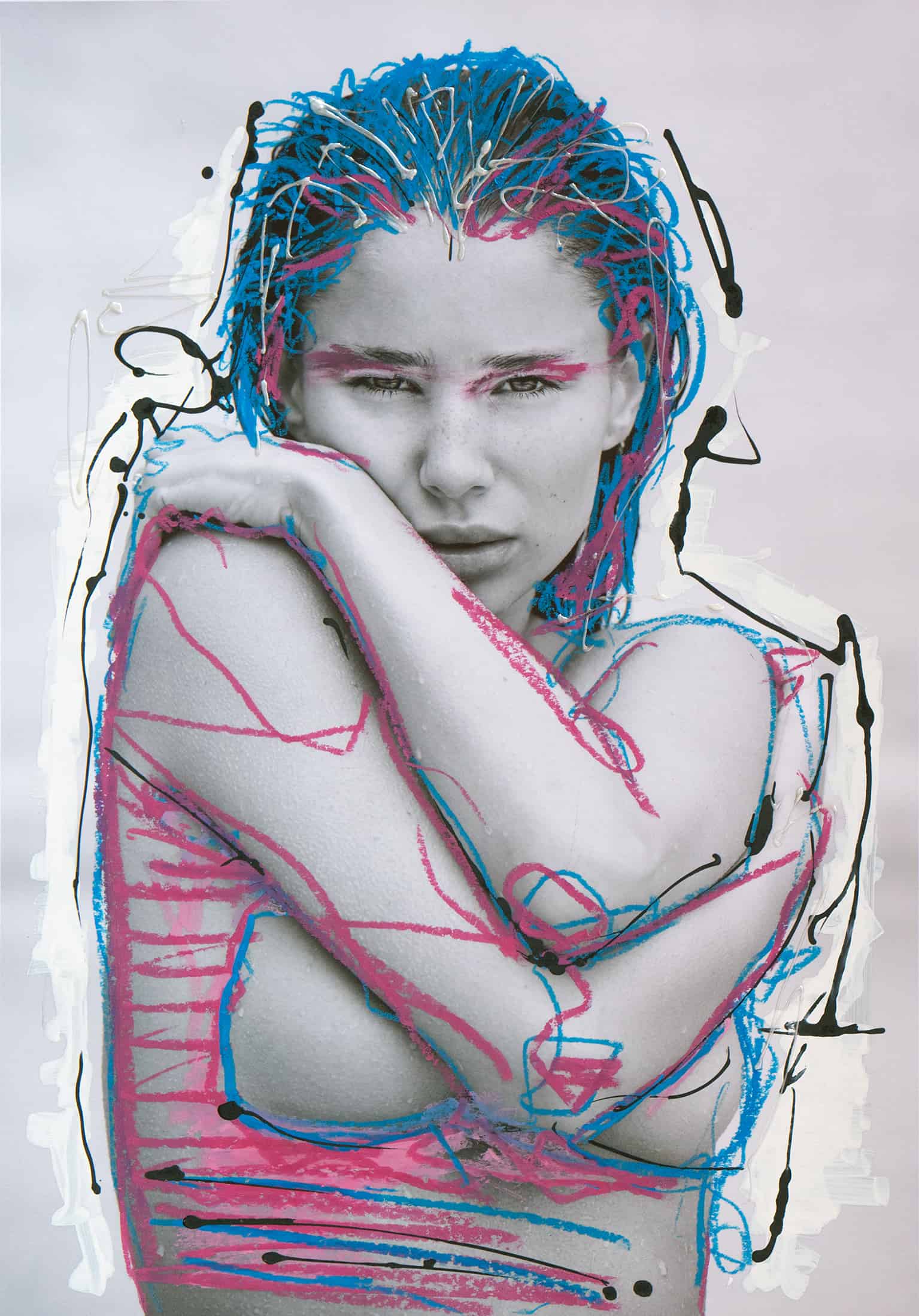 • Ink, Opaque White, Paint Marker, Crayon, original photography, overpainting on photopaper.