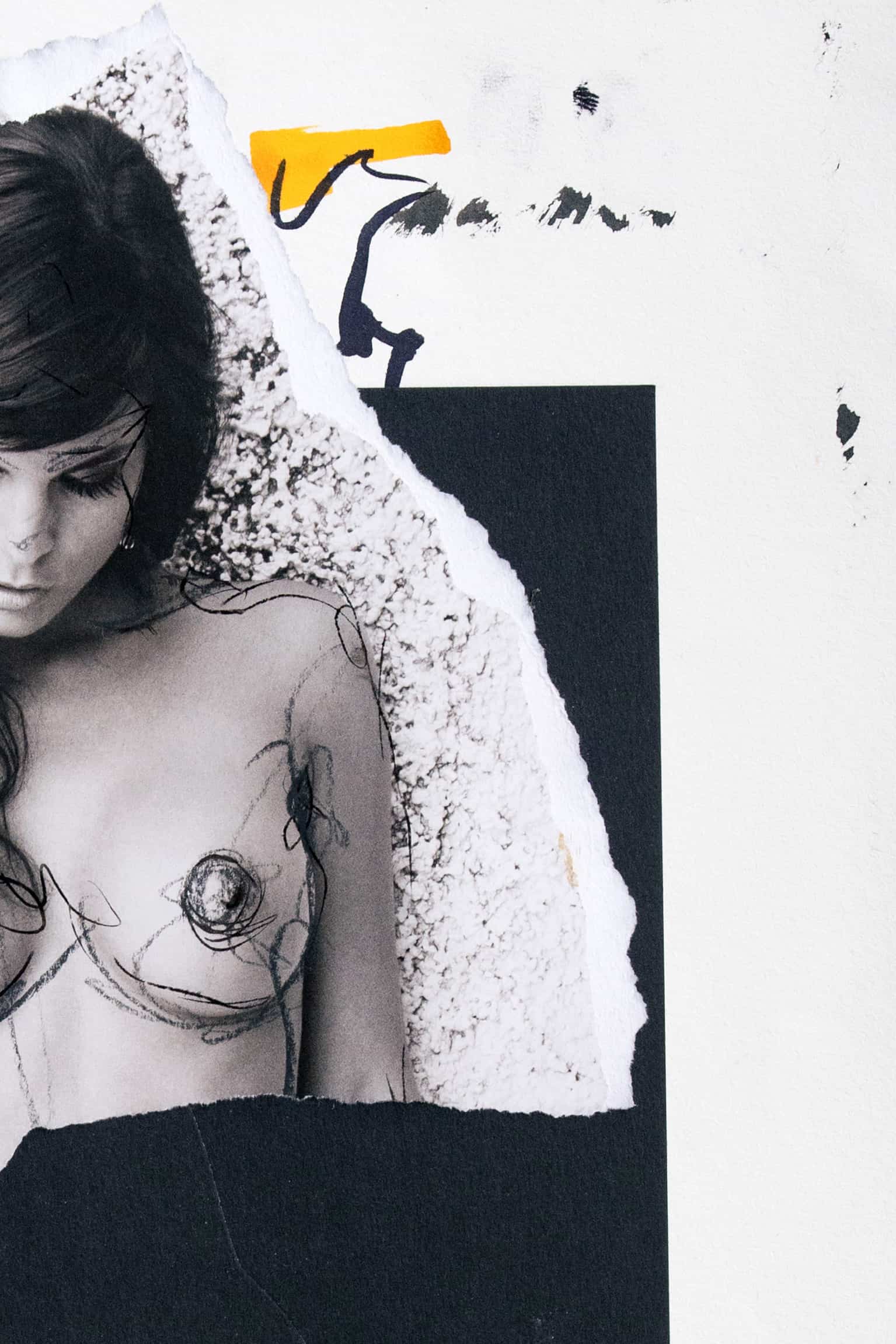 This piece is a compelling example of the art of collage and the subtle power of visual language. Combining two photographs, each depicting a part of the female body, it creates a fascinating tension between fragmentation and wholeness. Through the technique of collage, an unexpected connection emerges, challenging the viewer to contemplate the concept of identity, fragmentation, and unity. The title “The Unexpected Crack” adds another layer to this reflection, suggesting an unexpected rupture or opening hidden within the composition of the two images.