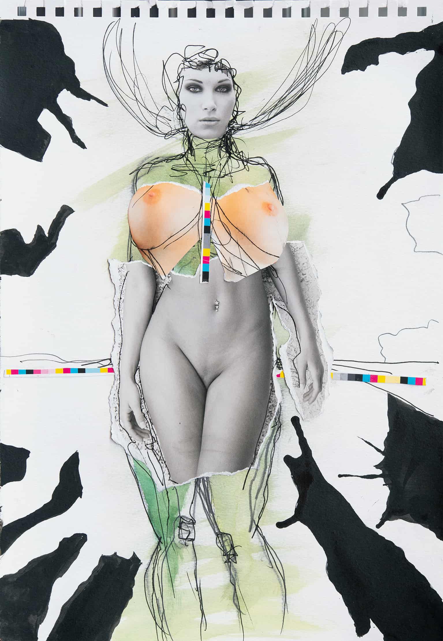 • Ink, Pen, Watercolor, printed photography, collage on photopaper.