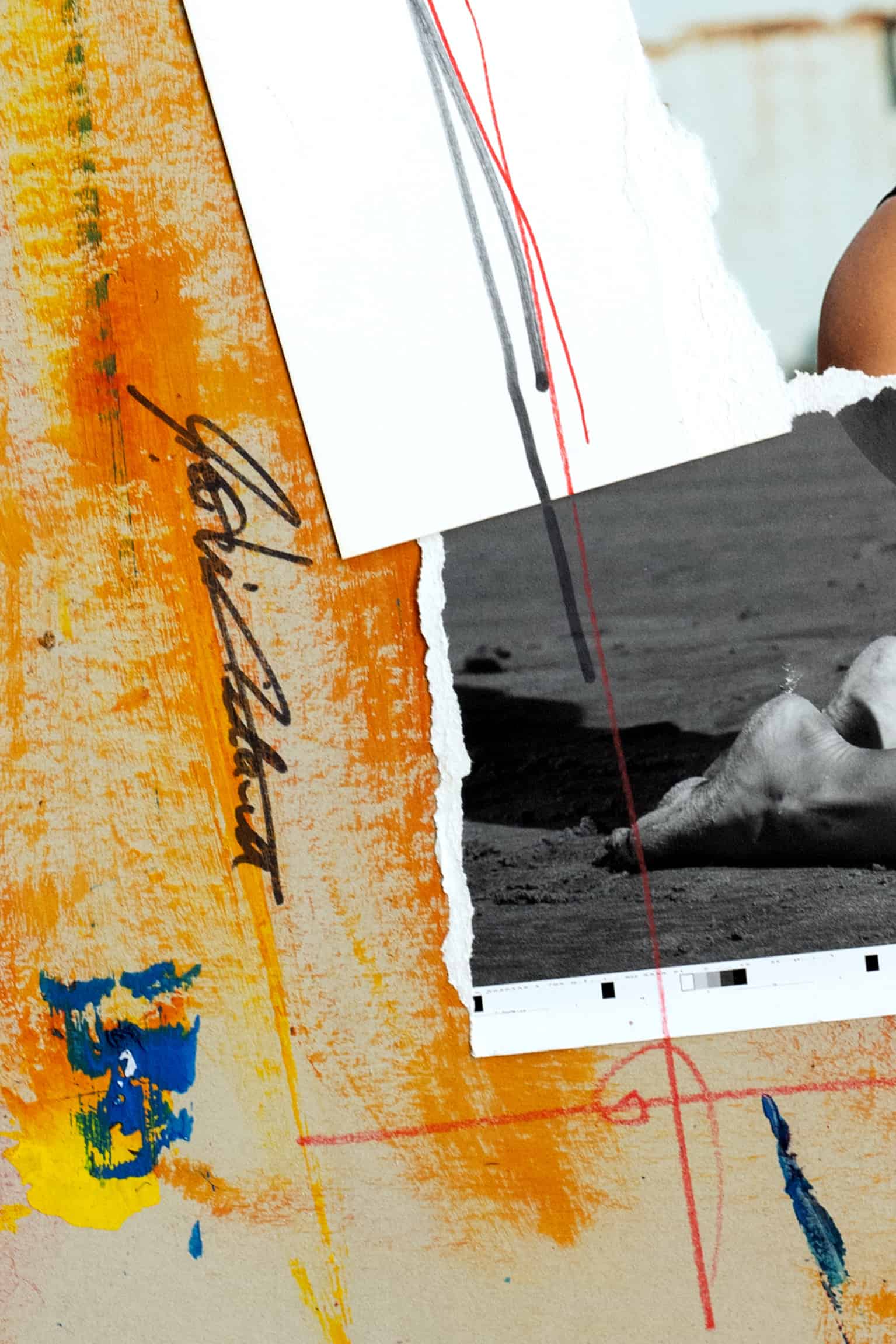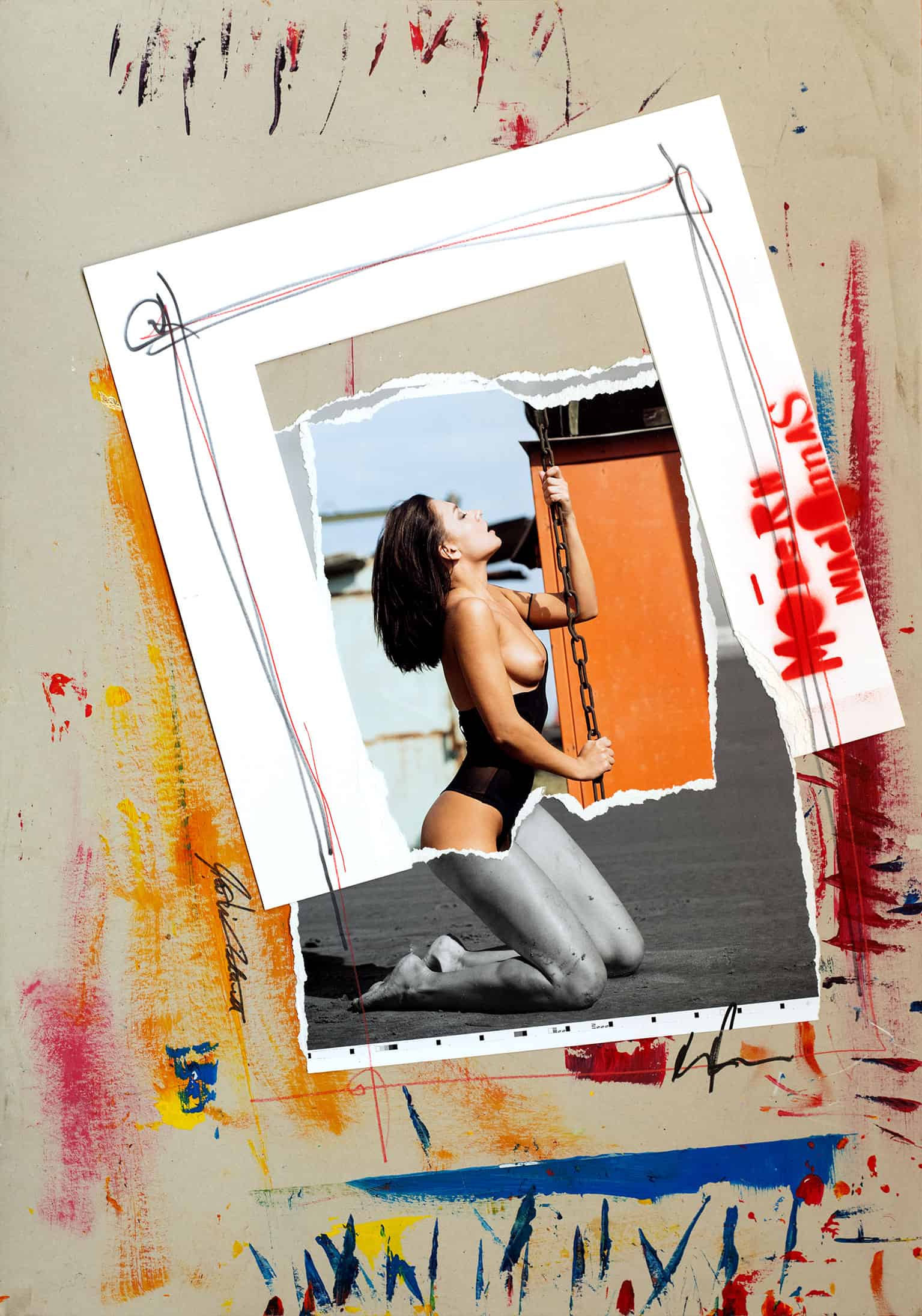 • Acrylic, Spraypaint, Ink, printed Photographs, Collage on Cardboard