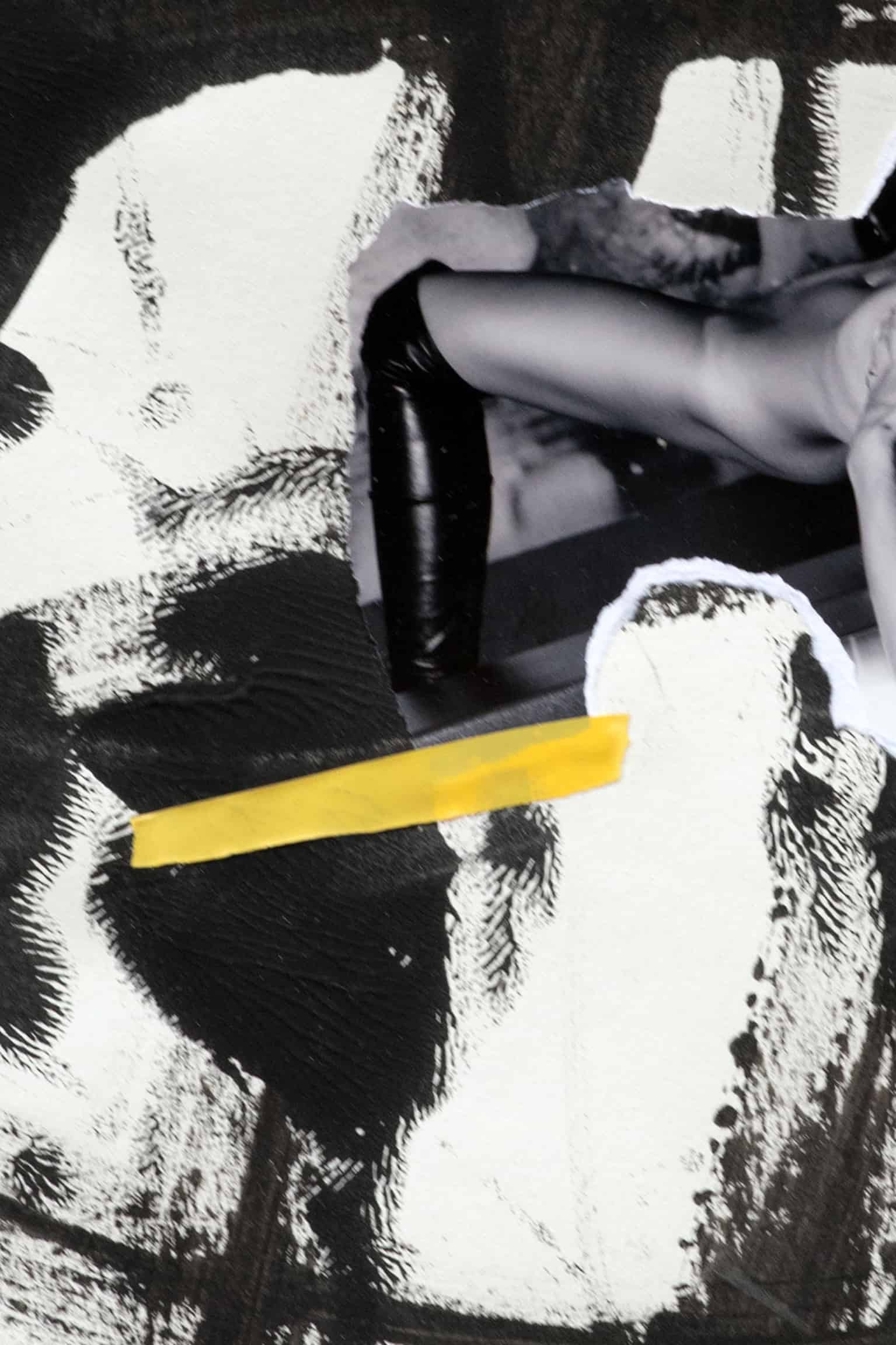 • Ink, adhesive tape, printed photography, collage on paper.