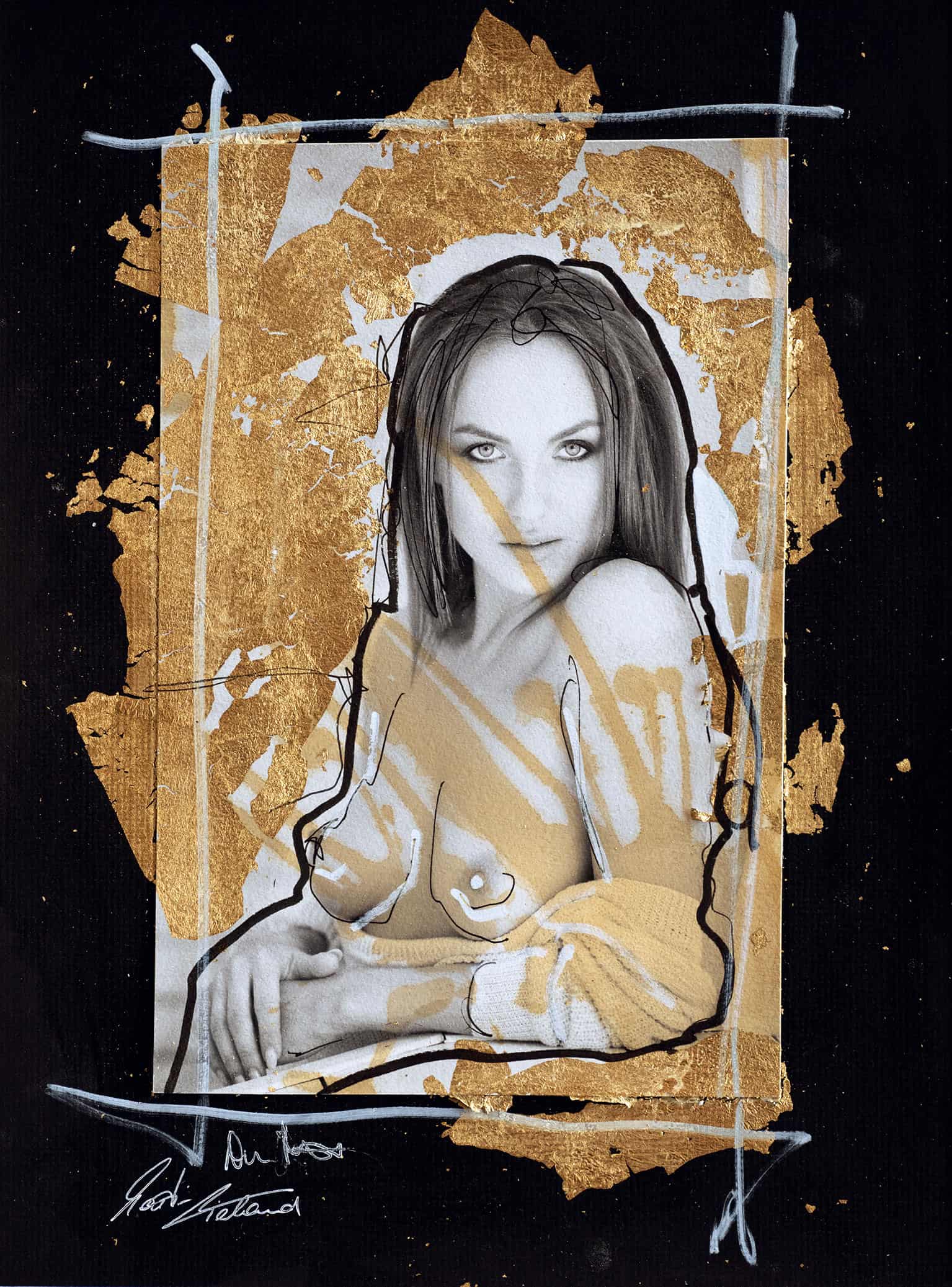 • Lacquer Pen, Leaf Gold Foil, Original Photograph Hahnemühle FineArt Baryta, Collage on cardboard