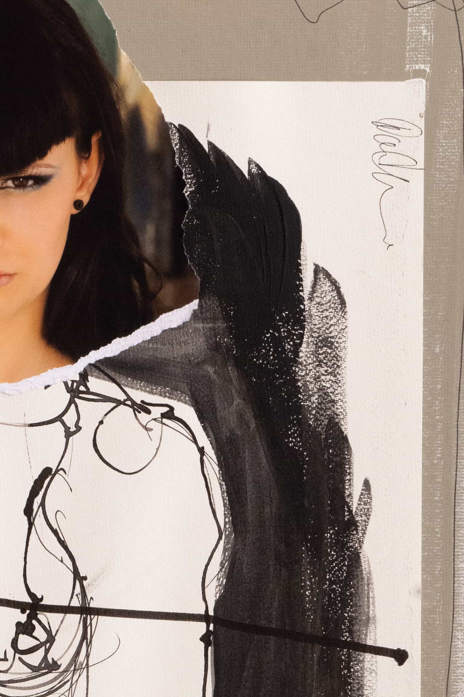 “A Different Kind of Appointment” explodes with the bold contrasts and vibrant energy typical of Pop Art. The central image of the woman gripping a whip is framed by torn edges and dynamic black and white sketches, creating a striking visual juxtaposition. The use of bright, clean lines and the playful incorporation of photographic elements against a beige background give the piece a fresh and edgy feel. This artwork captures the essence of Pop Art by blending everyday imagery with a bold artistic statement, making it a lively addition to any modern space.