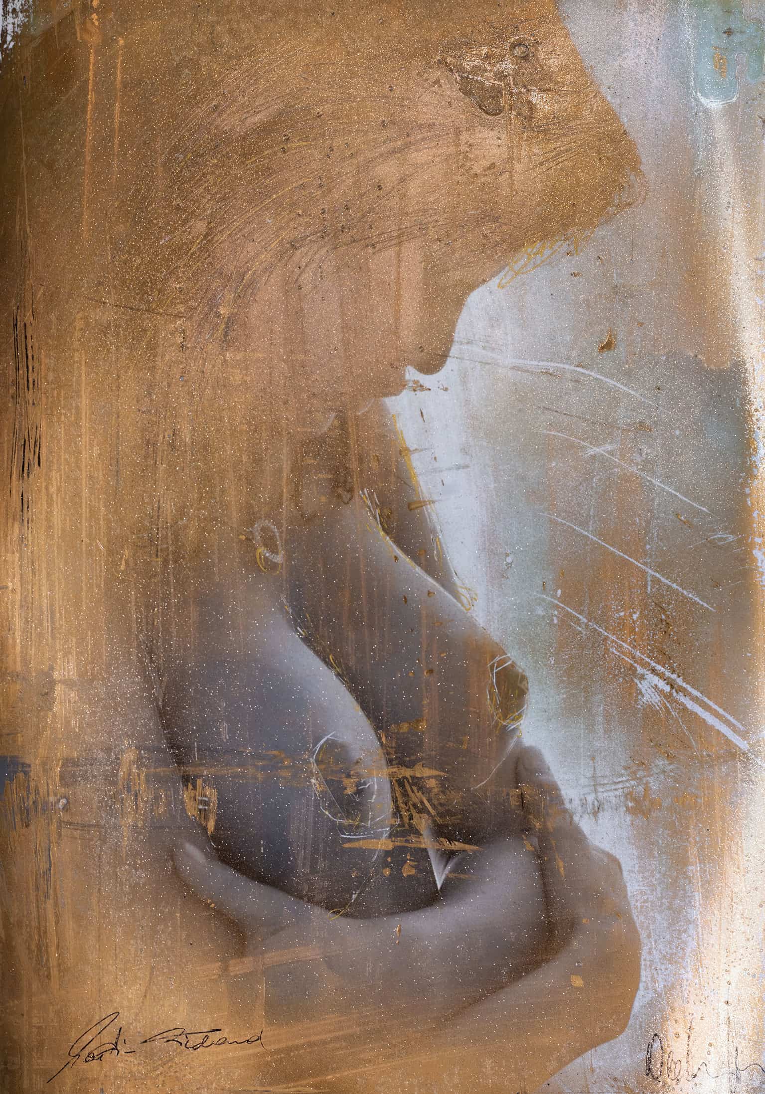 • Lack, Goldfarbe, Glitzer, Übermalung auf Fotopapier