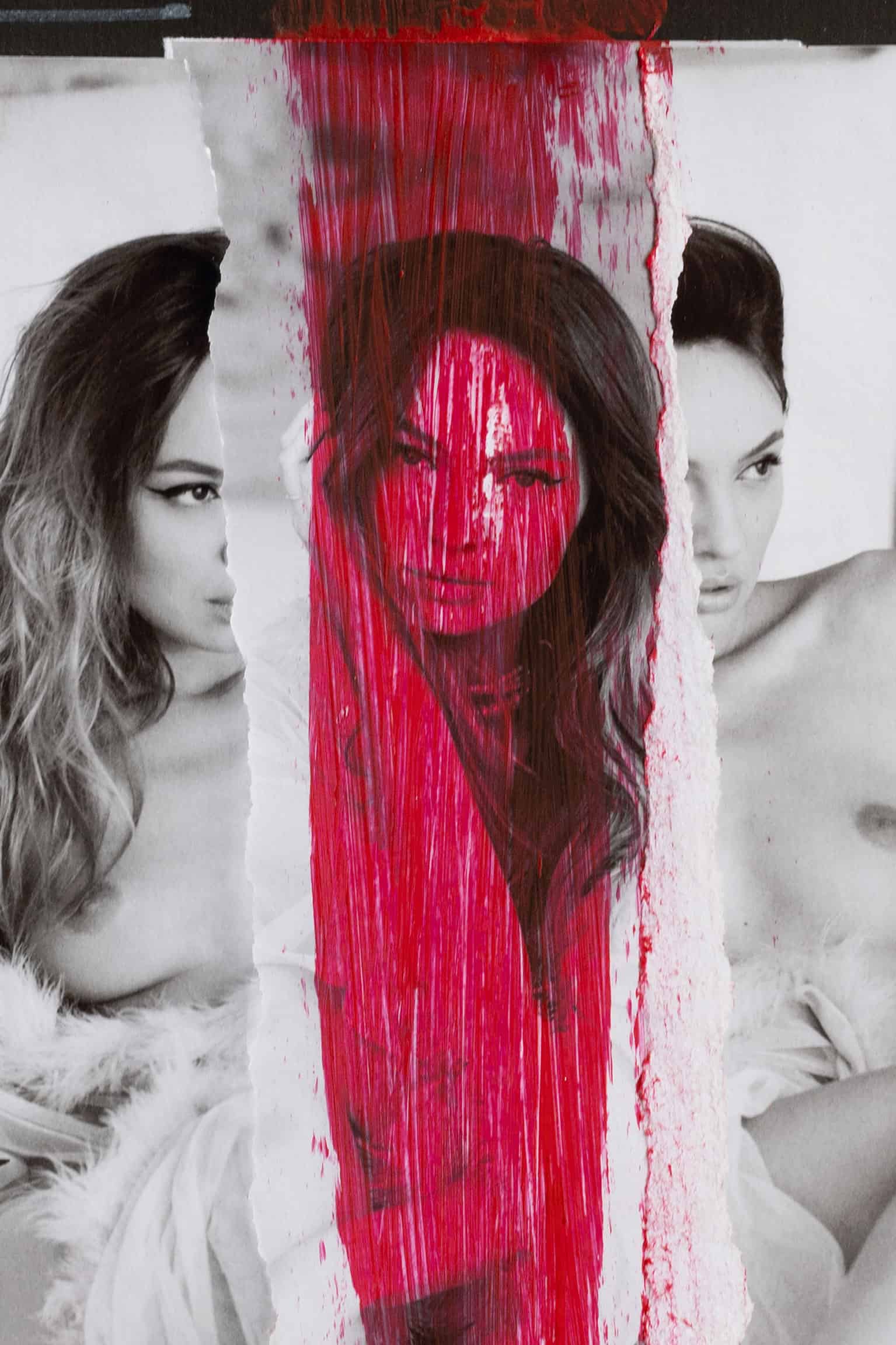 „Modern Tri“ ist wie ein Triptychon auf Speed – drei verschiedene Aufnahmen einer Frau, die mit einem knallroten Strich zusammengenäht wurden. Jede Pose zeigt eine andere Seite, eine andere Stimmung. Der rote Pinselstrich in der Mitte sorgt für diesen extra Kick, der das Ganze zusammenhält und gleichzeitig aufregend auseinanderreißt. Ein modernes Spiel mit Identität und Selbstbild, das definitiv hängen bleibt.