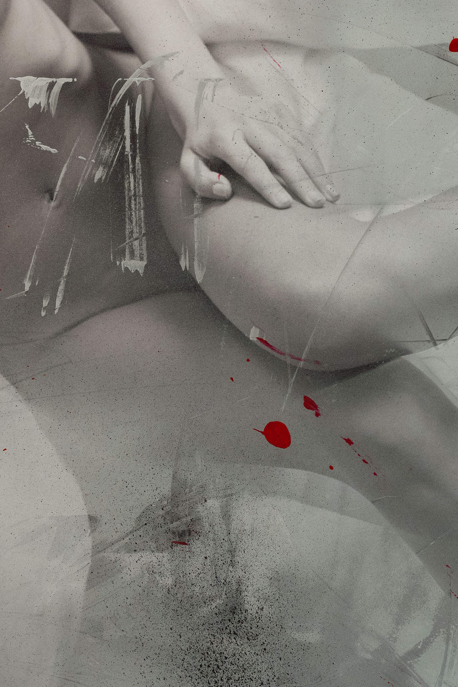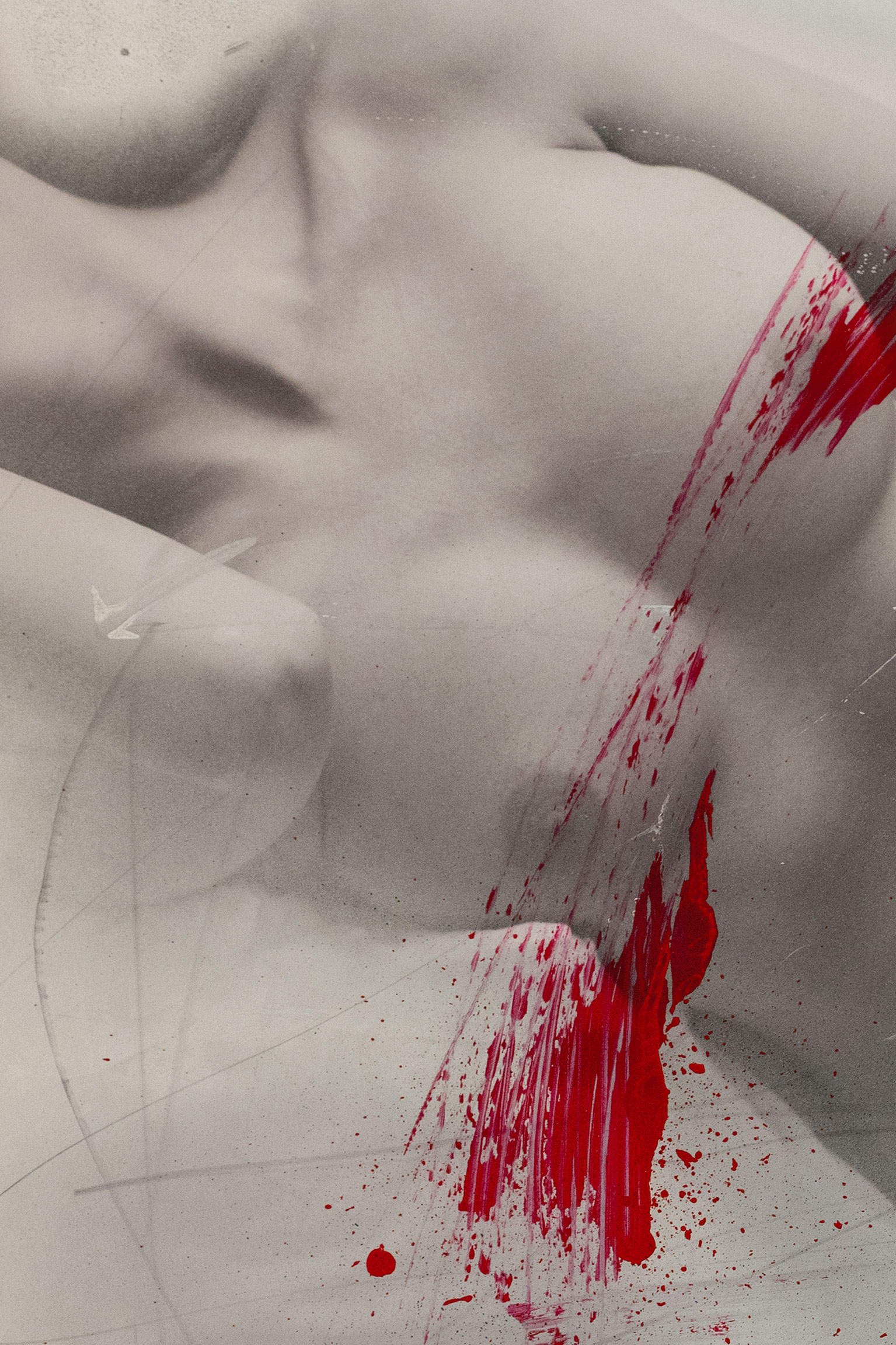 „NeoChrome“ erforscht die Balance zwischen Körper und Abstraktion. Die fast transparente Darstellung des Körpers verschmilzt mit dem Hintergrund, während die roten Akzente die Aufmerksamkeit zurückholen und den Blick auf Details lenken. Diese Komposition wirkt modern, fast wie eine experimentelle Fotografie, die das Verhältnis von Farbe, Körper und Raum in Frage stellt.