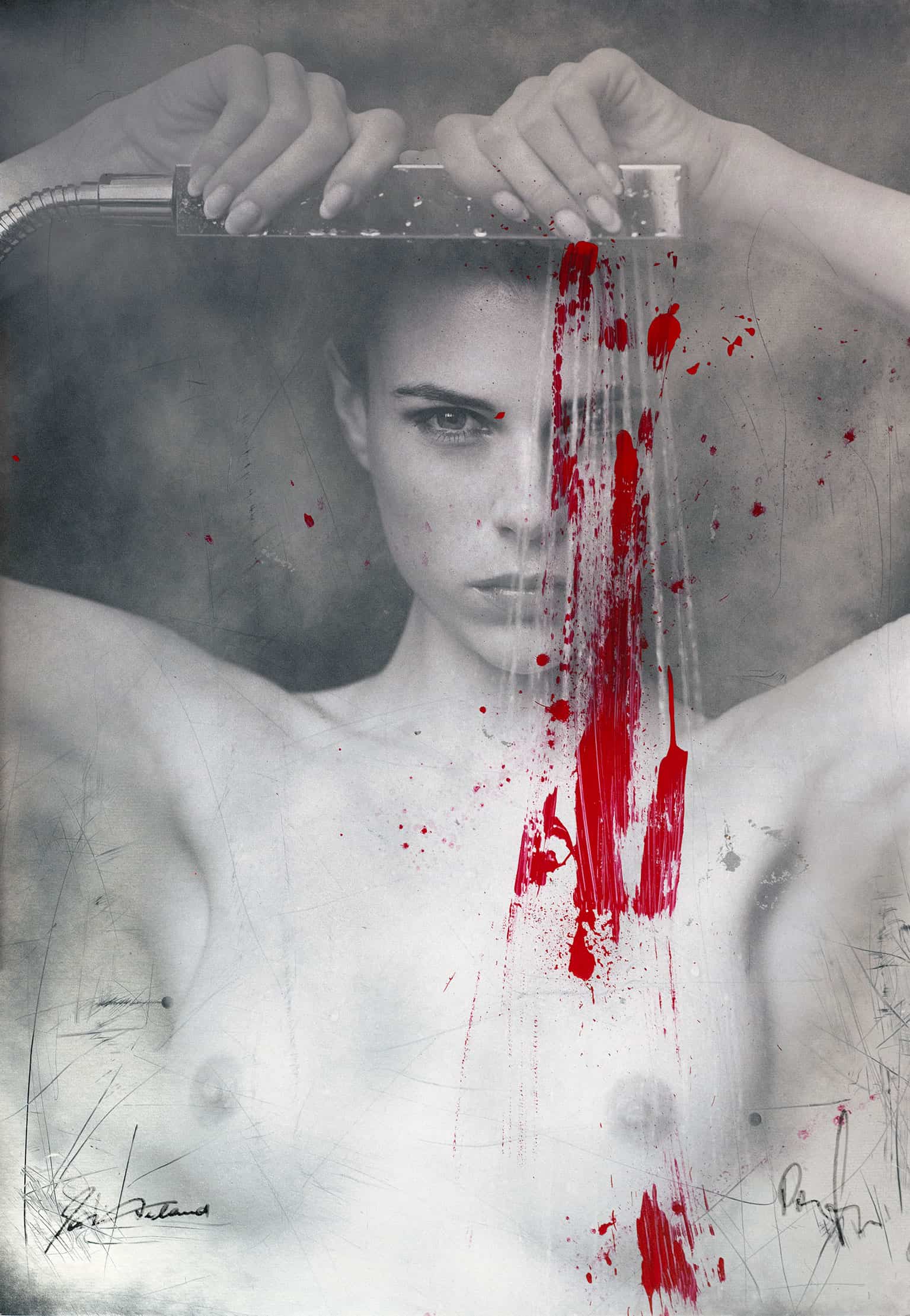 • Acryl, Sprayfarbe, Originalfotografie, Übermalung auf Karton