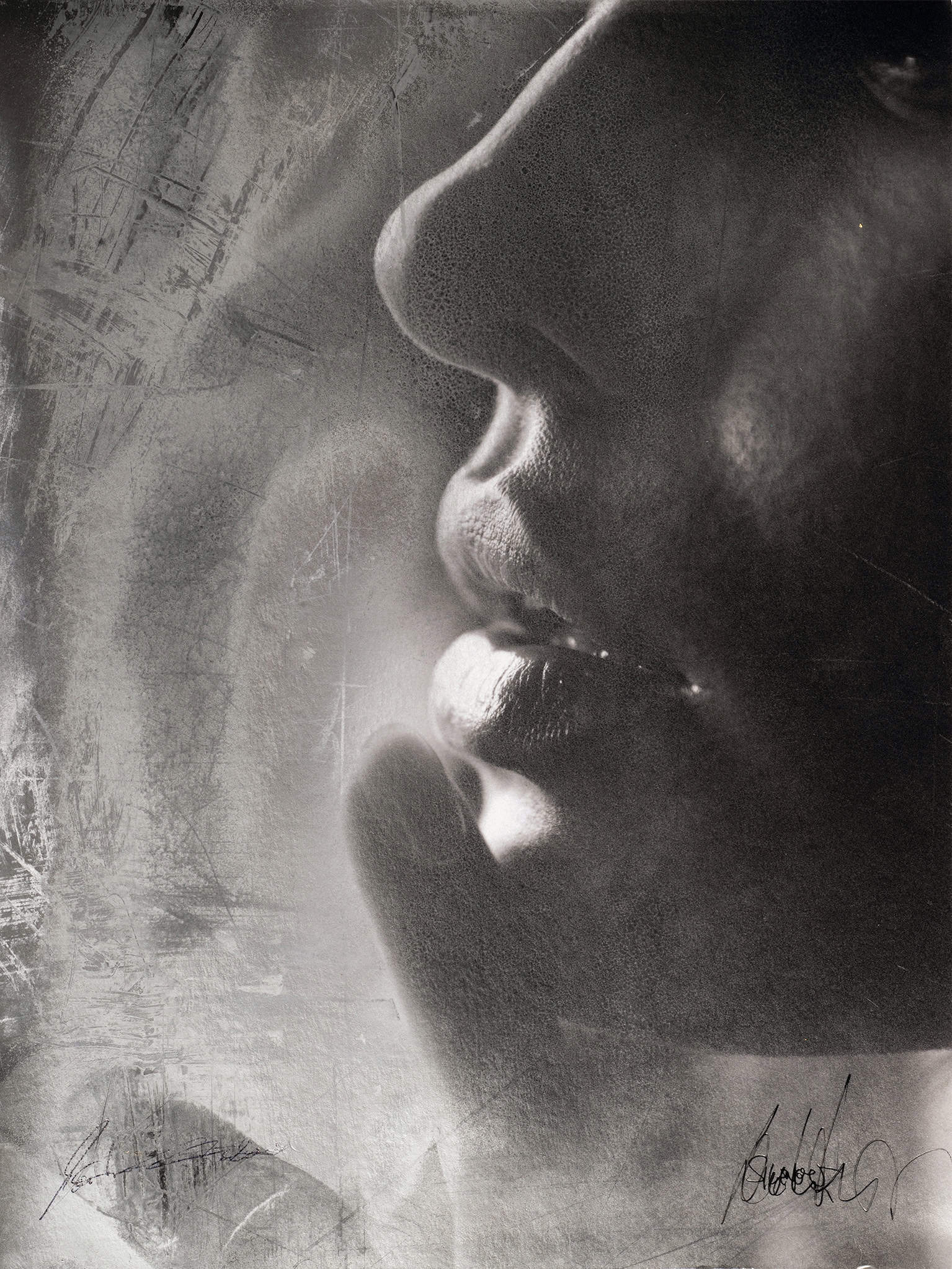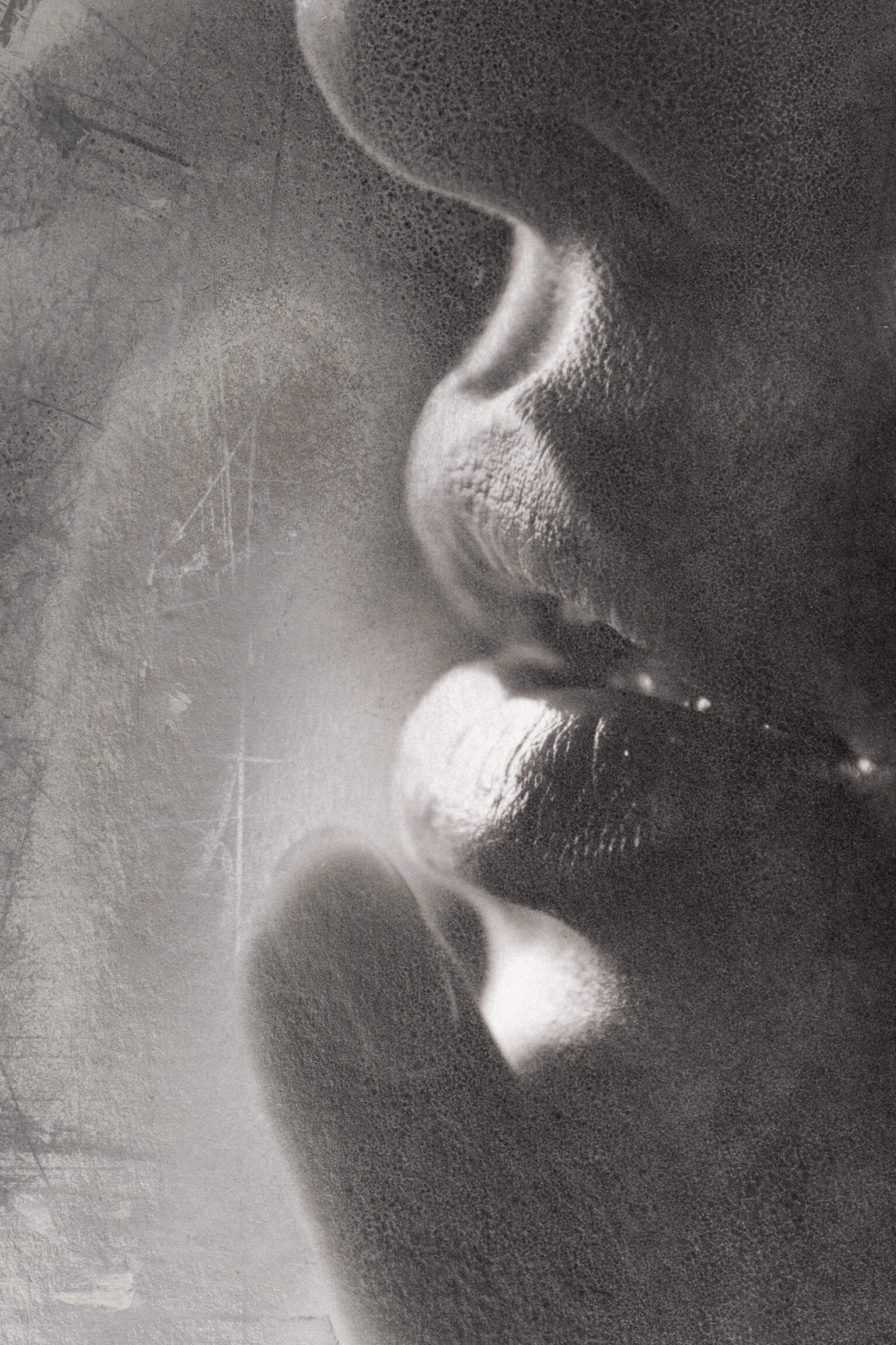 “Silence II” brings a cool, calm vibe with its minimalist aesthetic. The black-and-white photograph features an extreme close-up of lips and nose, almost abstract in its presentation. The focus on the skin’s texture and the way light plays over the forms create a subtle sensuality. The simplicity of the image, combined with its intense closeness, makes it a modern classic that is powerfully effective in its stillness. “Silence” is a piece that stands out through its clarity and depth, perfect for those who appreciate modern, stylish art.