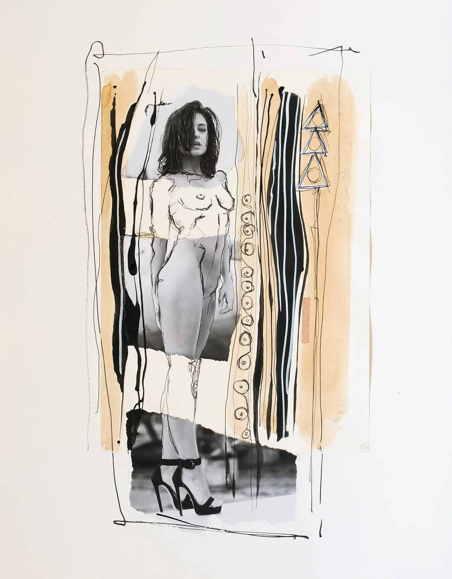 In dieser kraftvollen Komposition trifft die Eleganz der Fotografie auf die Rohheit abstrakter Elemente, die gemeinsam eine Geschichte von Kontrast und Harmonie erzählen. Die Frau im Zentrum strahlt Stärke und Selbstbewusstsein aus, umgeben von expressiven Pinselstrichen, die Gefühl und Bewegung suggerieren. Dieses Werk ist ein fesselnder Blickfang und eine wertvolle Bereicherung für jede Sammlung, die die Schnittstelle zwischen Realität und Kunst erkundet.