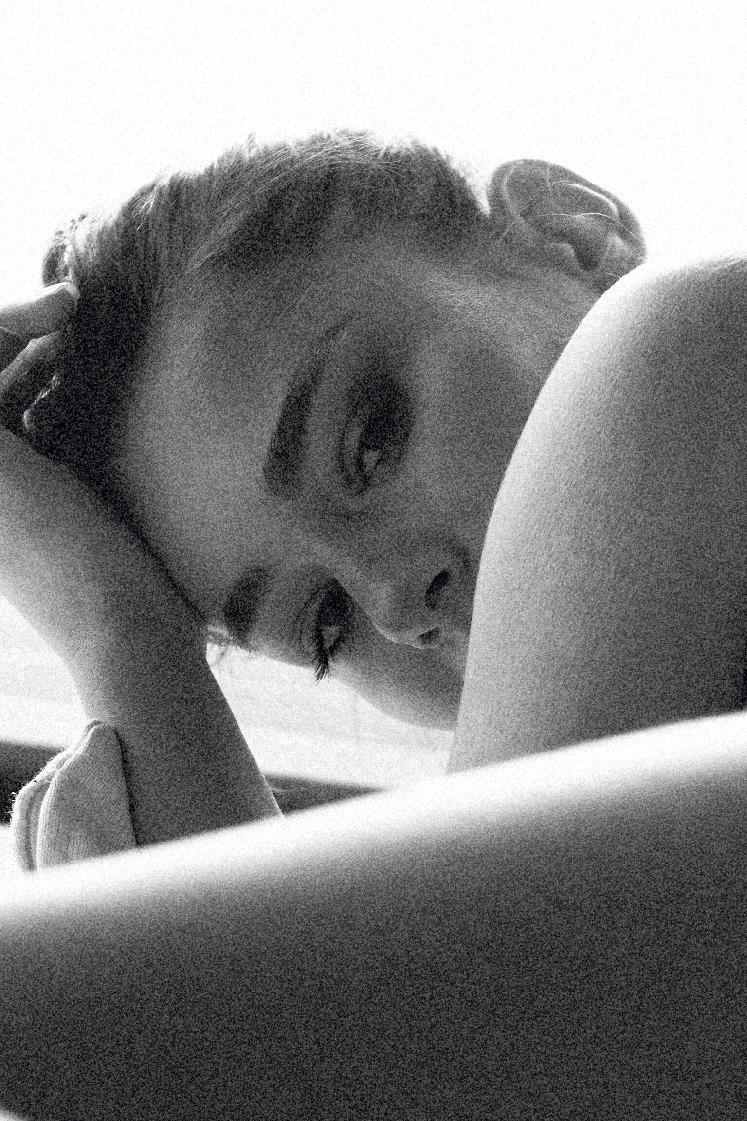 A gaze that leaves more questions than answers. The world blurs in the background, while her face and expression captivate and won’t let go. Black and white, grainy, a little rough—the kind of shot that sticks with you, begging for a second look.