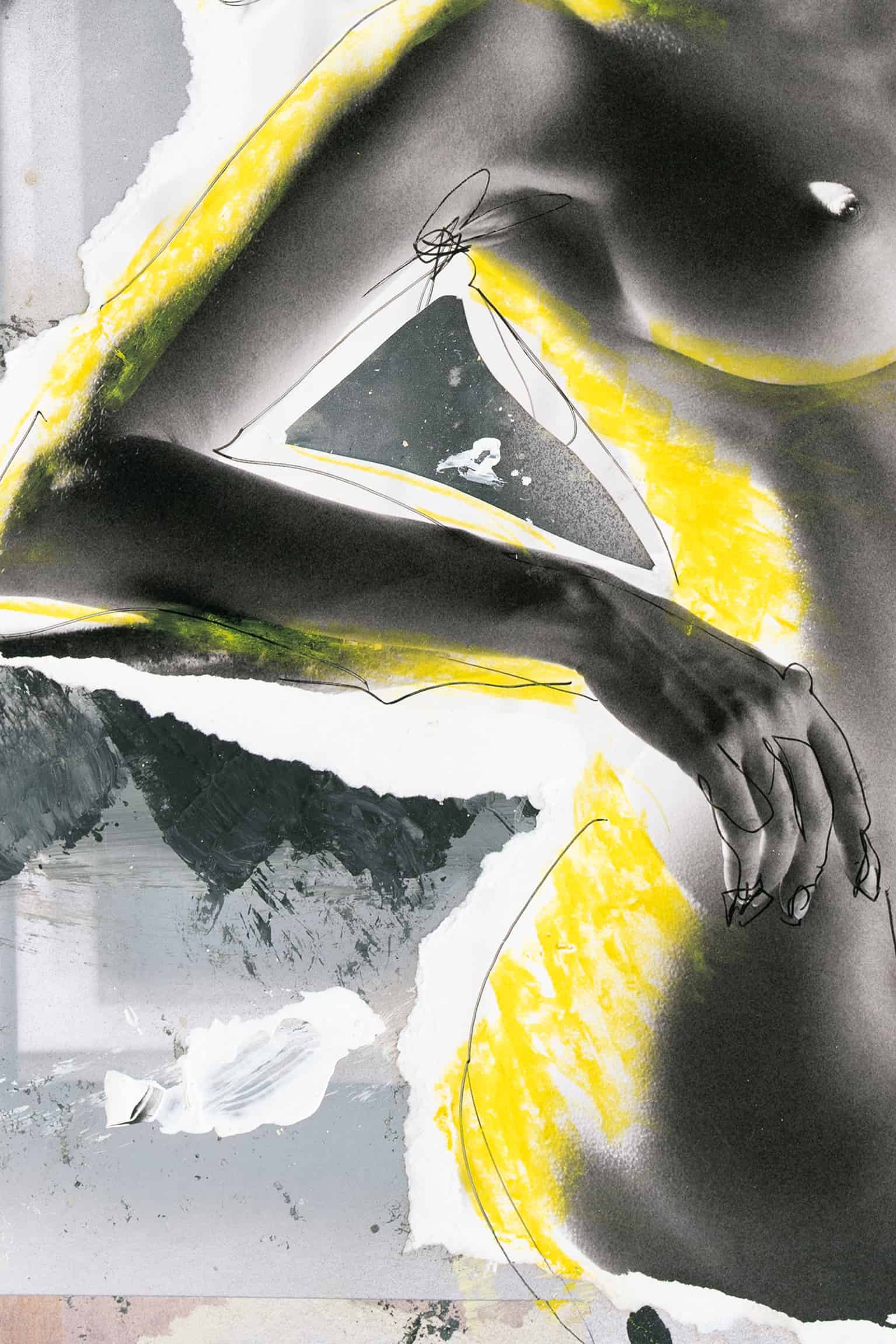 • Tusche, Wachsmalstift, Deckweiss, Original Fotografie, Collage auf Karton