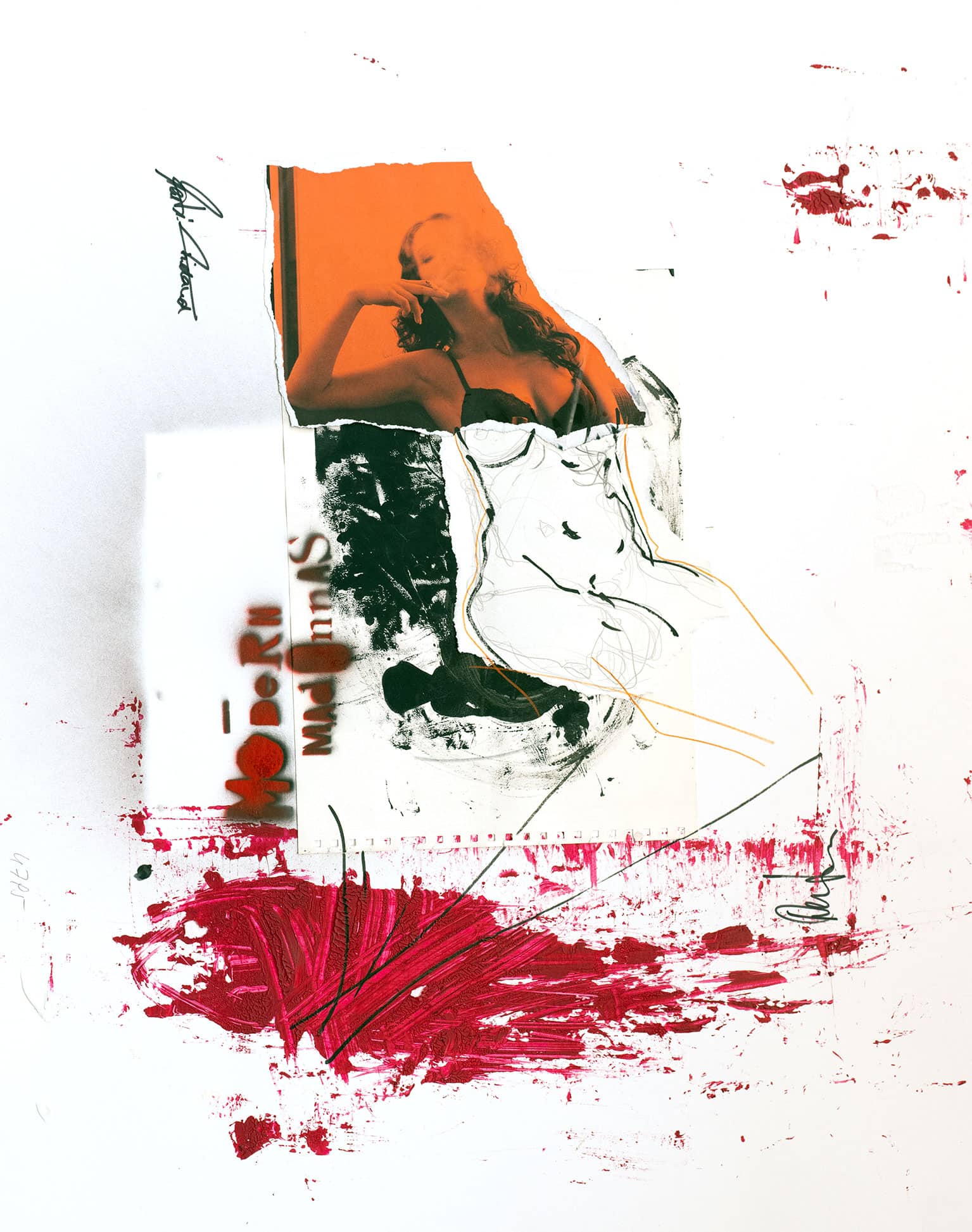 • Acrylic, ink, Spraypaint, printed photograph, collage on paper